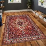 Kırmızı Siyah Çiçekli Oriental Modern Halı